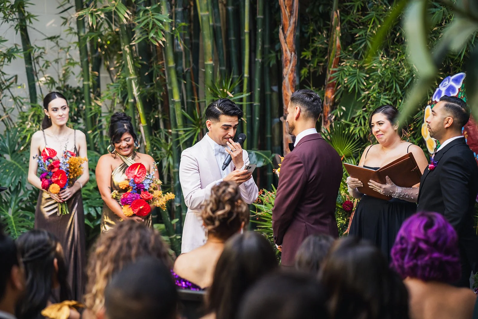The Brief: V+N wanted to transform Grassroom's industrial space into a lush, tropical escape that felt both elevated and romantic for their 120-guest celebration.
