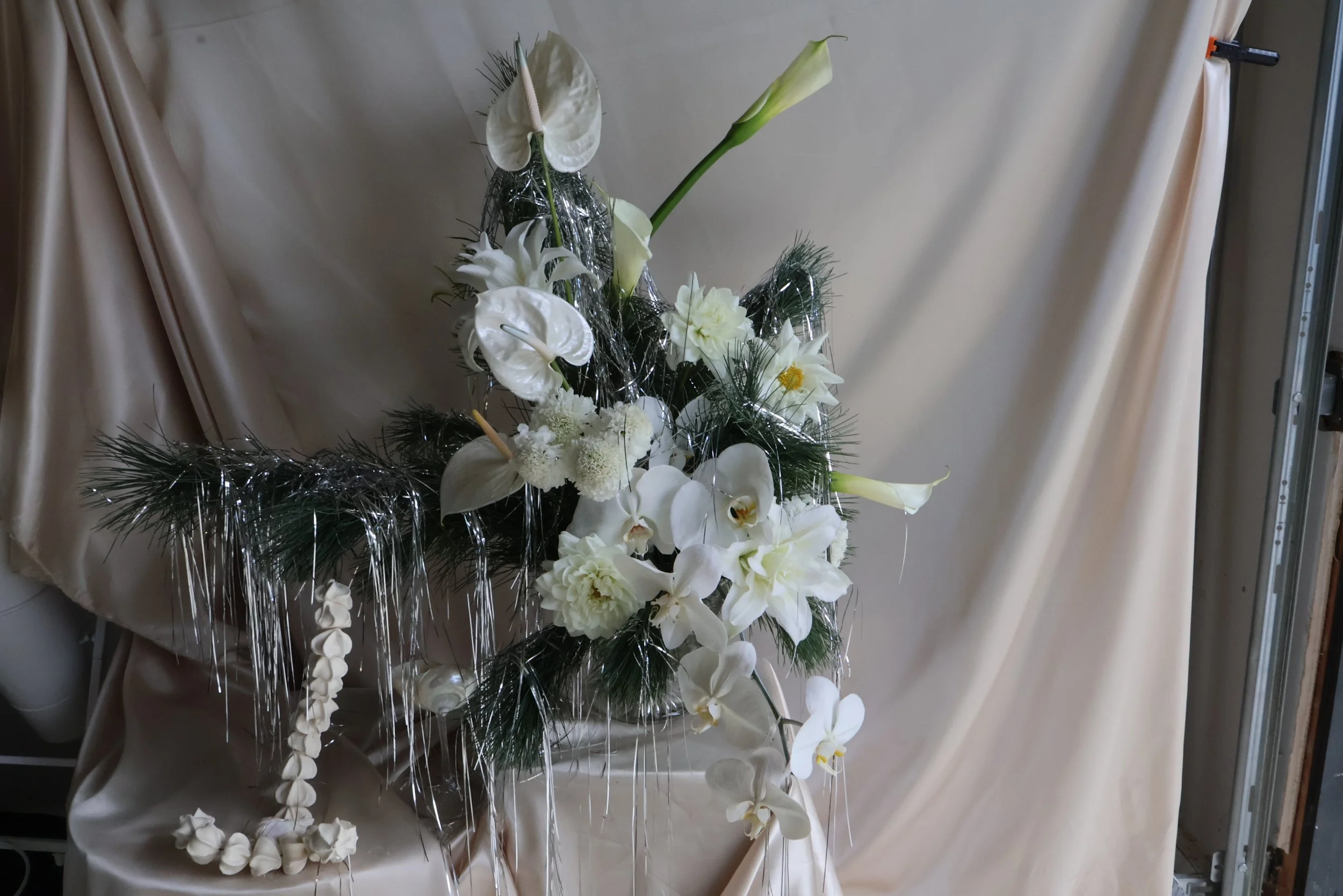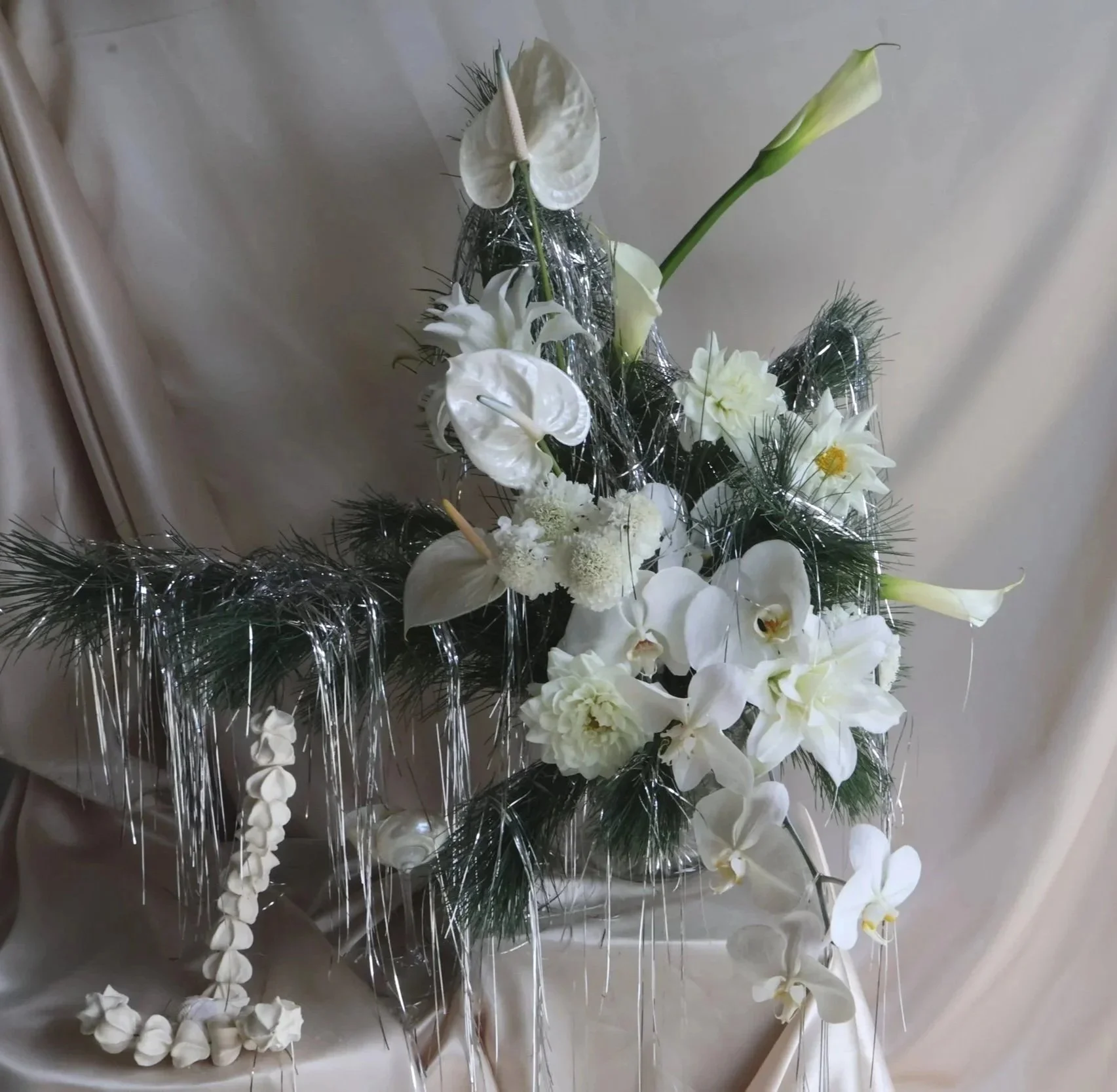 • Signature phalaenospis orchids in seaglass green